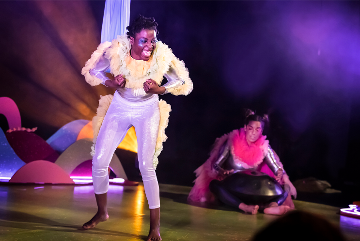 This multi-sensory, interactive show ignites the imagination and curiosity of babies who are then invited into the space with the performers to explore the baby safe set and props, including having a swing in the silks.